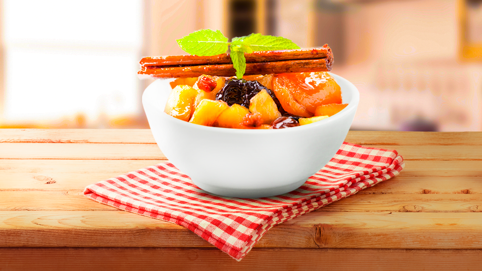 1. Hervir en 750 mL de agua el azúcar, Canela Entera Lopesa, Clavo de Olor Lopesa, los orejones, pasas, nueces y frutas restantes por 30 min y finalmente antes de 5 minutos agregar el vino